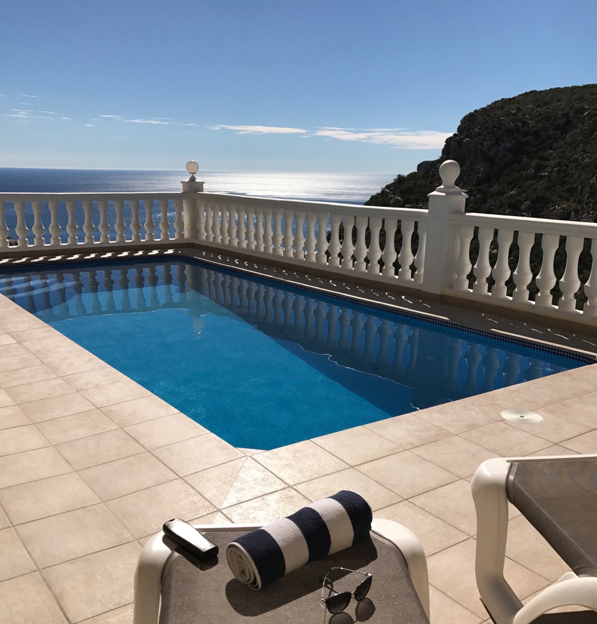 Sunbathe on the comfy sun loungers, or enjoy cooling off in the glamorous glass-brick shower before a dip in the pool - all enhanced by those fabulous views!.